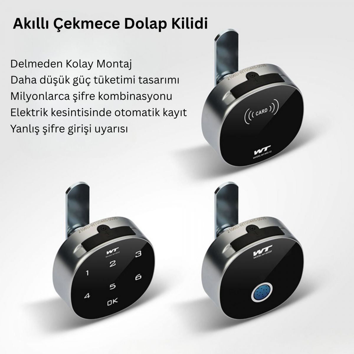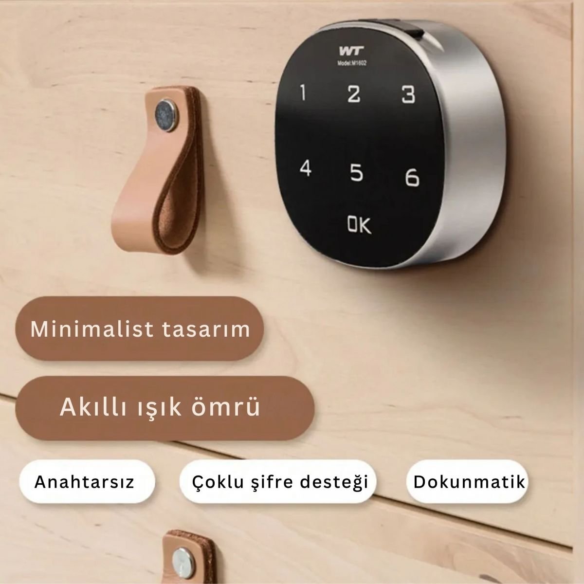 SHOPYTECH Akıllı Şifreli Dolap Çekmece Kilidi Dokunmatik Sayısal Tuş Takımı, Anahtarsız Elektronik Kam Kilit, Metal Ahşap Uyumlu Bu akıllı şifreli dolap kilidi; ev, ofis ve mağaza çekmeceleri için tasarlanmış, anahtarsız ve dokunmatik güvenlik çözümüdür. Modern siyah cam paneli ve kompakt gövdesi ile mobilyanın tasarımını bozmazken, 4–15 haneli programlanabilir PIN kodu sayesinde klasik anahtar derdini ortadan kaldırır. Metal ve ahşap dolaplara uyumlu kam mekanizması; evrak dolabı, kişisel çekmece, posta kutusu, personel dolabı, soyunma odası ve vitrin gibi pek çok alanda kullanılabilir. Düşük güç tüketimli CR2032 düğme pili yaklaşık 4.500 açma ömrü sunar; yanlış şifre denemelerinde ve düşük pil seviyesinde sesli/görsel uyarı verir. Dahili otomatik kilitleme modu, çekmeceyi kapattığınızda kilidin kendiliğinden devreye girmesini sağlayarak hassas eşyalarınızı gün boyu korur. • ANAHTARSIZ DOKUNMATİK GÜVENLİK: Pürüzsüz dokunmatik tuş takımı sayesinde çekmeceyi yalnızca şifrenizle açarsınız; mekanik anahtar taşıma, kaybetme veya kopyalanma riskini ortadan kaldırır.