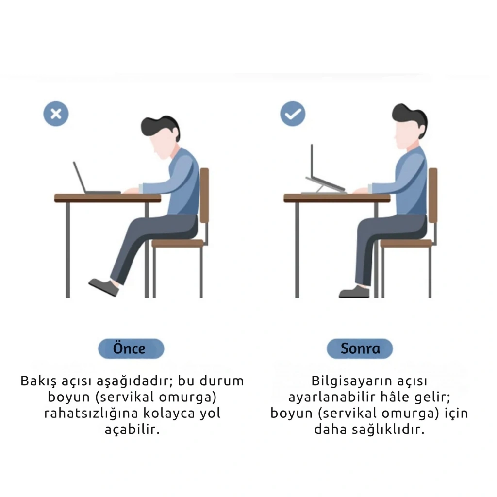 • 7 KADEMELİ ERGONOMİ: Ekranı göz hizasına yükseltir; boyun-sırt konforu için açı/yükseklik ayarı.