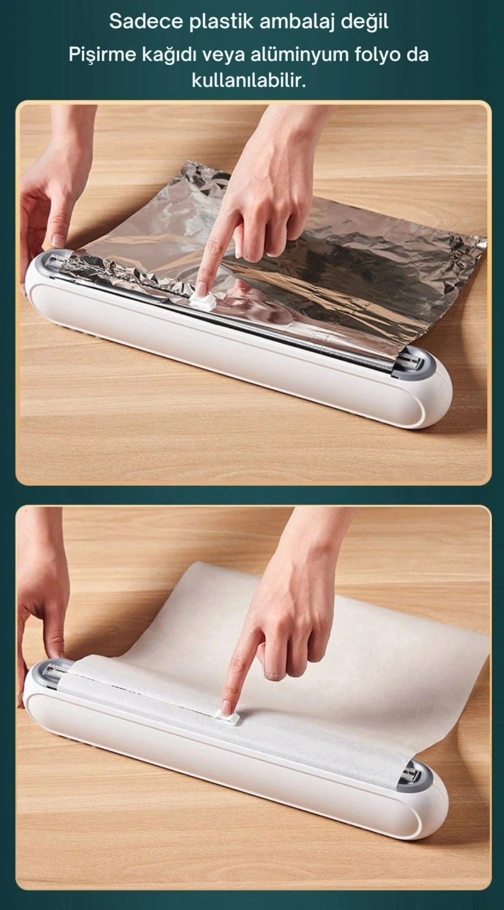 Sadece streç film için değil; pişirme kâğıdı ve alüminyum folyo ruloları ile de kullanılabilir. Böylece tek bir ürünle üç farklı sarf malzemesini düzenli şekilde saklayıp kesebilirsiniz; mutfak çekmecelerinde karışıklığı ortadan kaldırır. • ŞIK & DAYANIKLI ABS GÖVDE