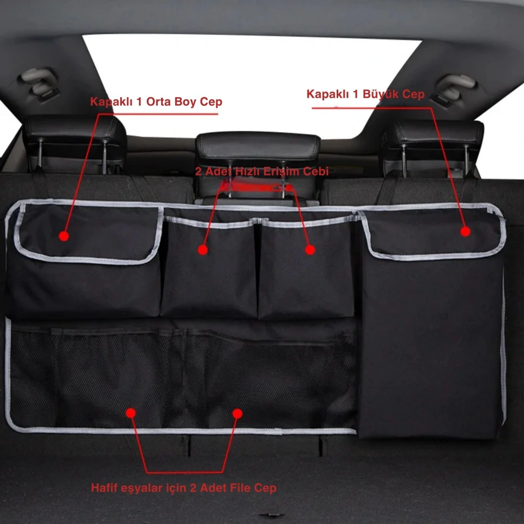 SHOPYTECH Su Geçirmez Araç Bagaj Organizeri 3 Askılı Arka Koltuk Düzenleyici Çok Cepli Bagaj Düzenleyici