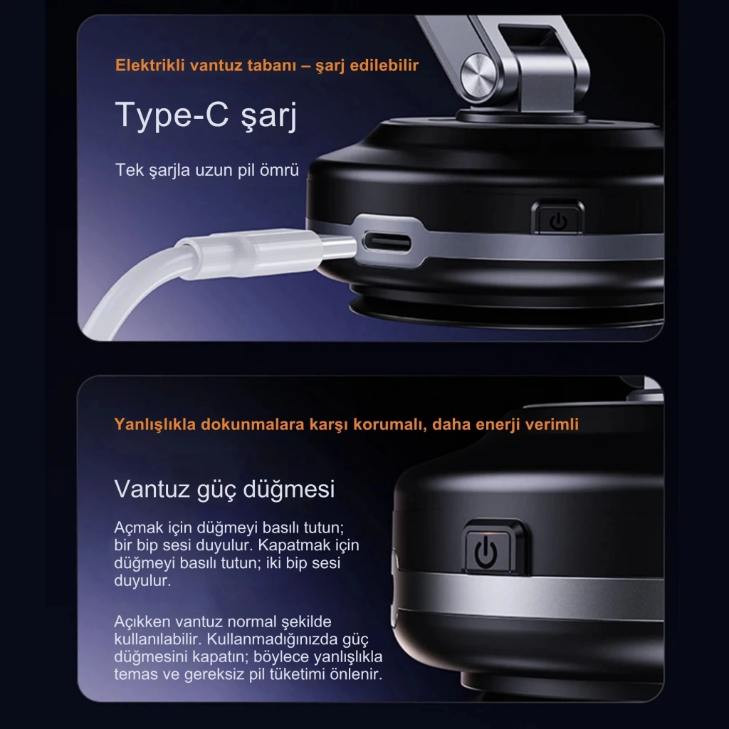 Güç: Type-C ile şarj edilebilen elektrikli vakum taban